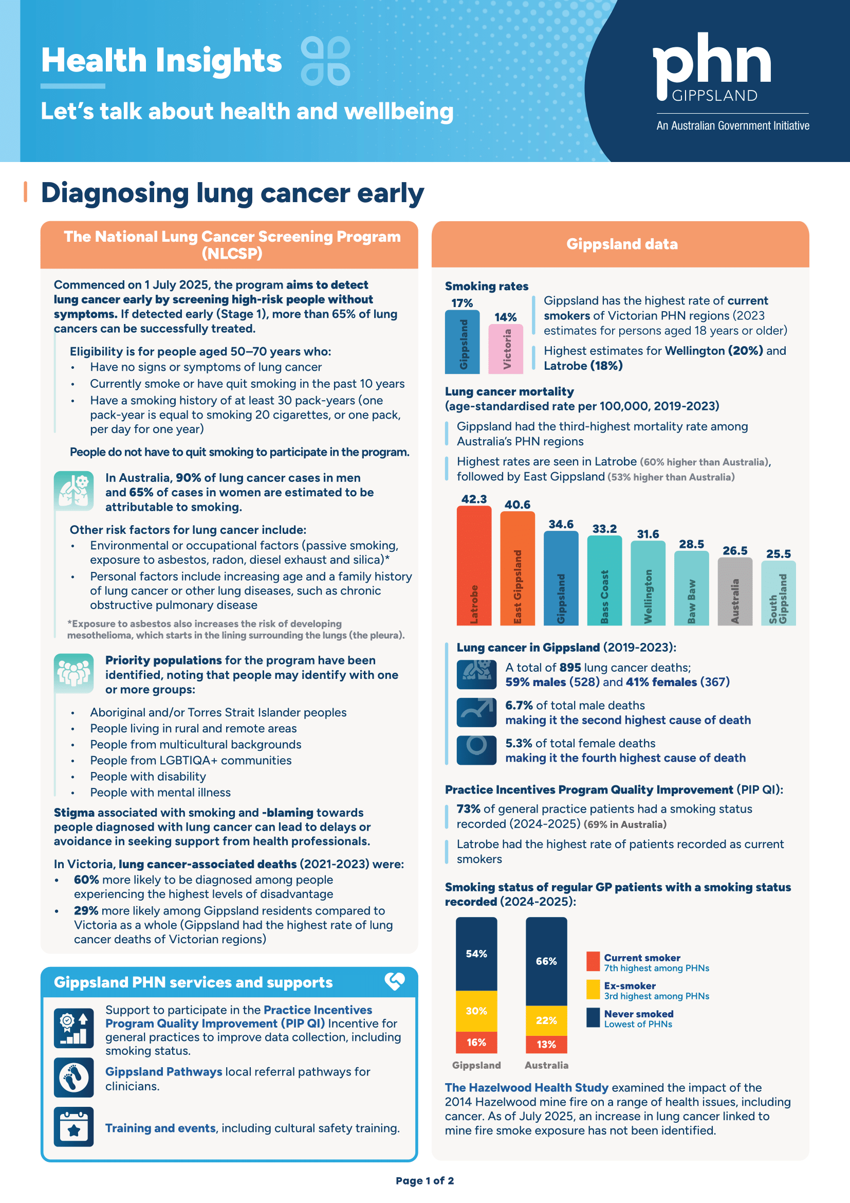 Gippsland PHN advocates for strategic health planning in priority and emerging areas by bringing together local data and intelligence from Gippsland PHN teams and Advisory Group members. Feedback and discussion about the content of the papers is welcome via tellgippslandphn@gphn.org.au